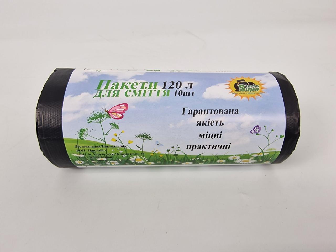 Сміттєвий пакет об'ємом 120 літрів, розміри 70х105 см, (10 шт. LD) Супер Торба чорний (1 рул)