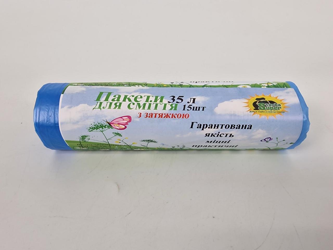 Сміттєвий пакет із зав'язкою 35літрів 150 гр. (15 шт LD) Супер Торба синій (1 рул)